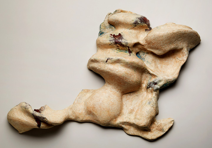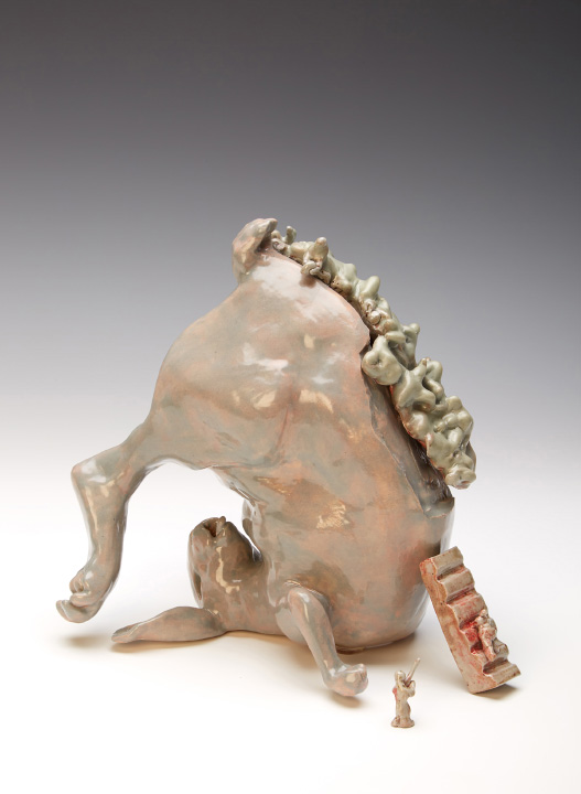 Clay, a new material for me and the most primal of all materials, is luring me to play inside out and further explore the elasticity of boundary. In some of the works, in particular “Bird Mountain,” internal structures and figures in the interior spaces are revealing new perils.